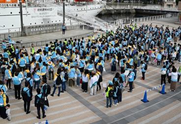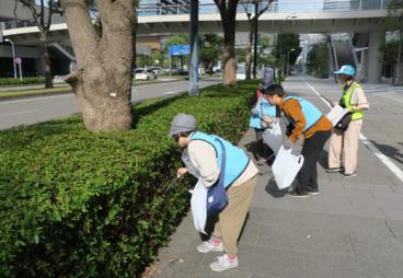 コース:桜木町駅 日本丸メモリアルパーク ~ 横浜駅東口駅前広場(約3km)を20グループに分かれて清掃